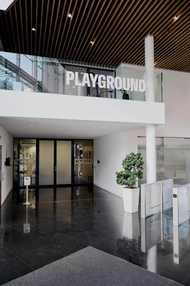 Au cœur du lieu se trouve The Playground, un espace de conférence entièrement modulable au design inédit, capable d’accueillir jusqu’à 200 personnes. Il se prête aussi bien aux conférences qu’aux spectacles ou aux plénières participatives.