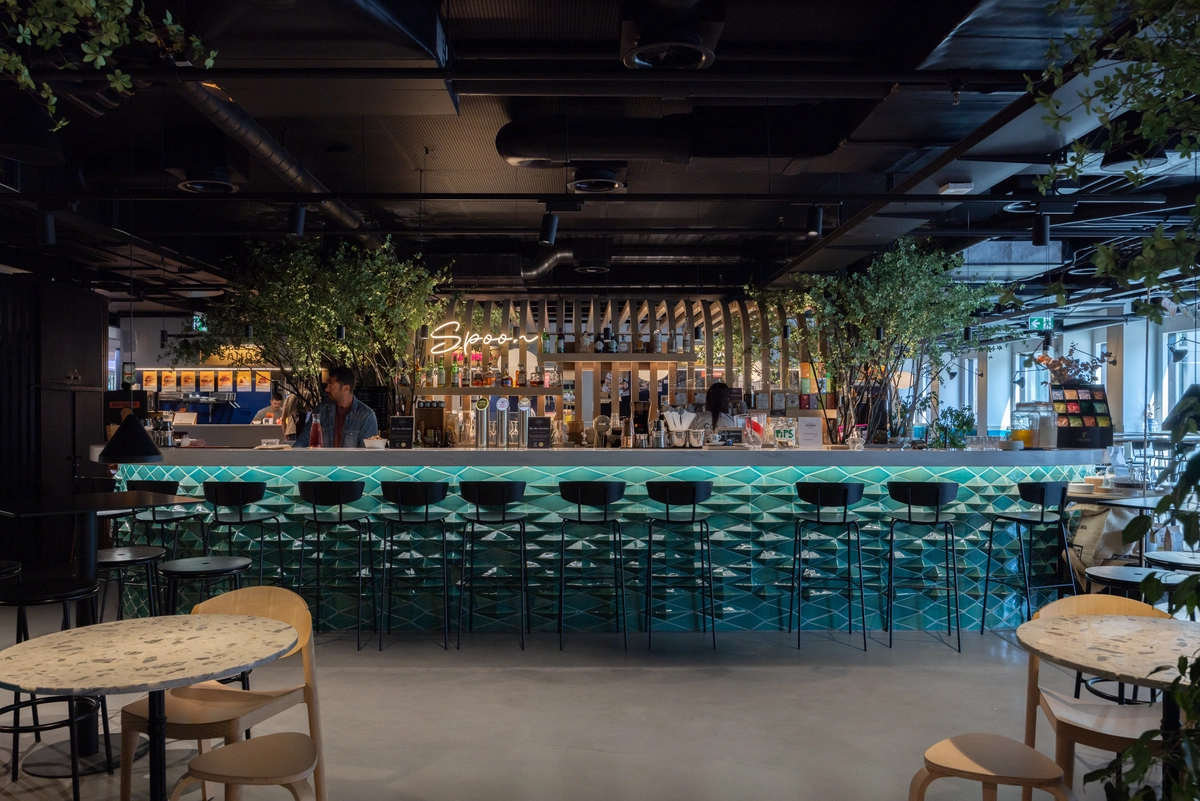 Le bar central constitue le cœur de cet espace culinaire. Vous pouvez vous y installer pour déguster une boisson rafraîchissante ou un cocktail élaboré, tout en profitant de l'atmosphère animée du lieu. Que vous soyez seul, en couple, entre collègues, entre amis ou en famille, le Spoon Food Hall offre un cadre idéal pour partager un verre ou un repas dans une ambiance décontractée.